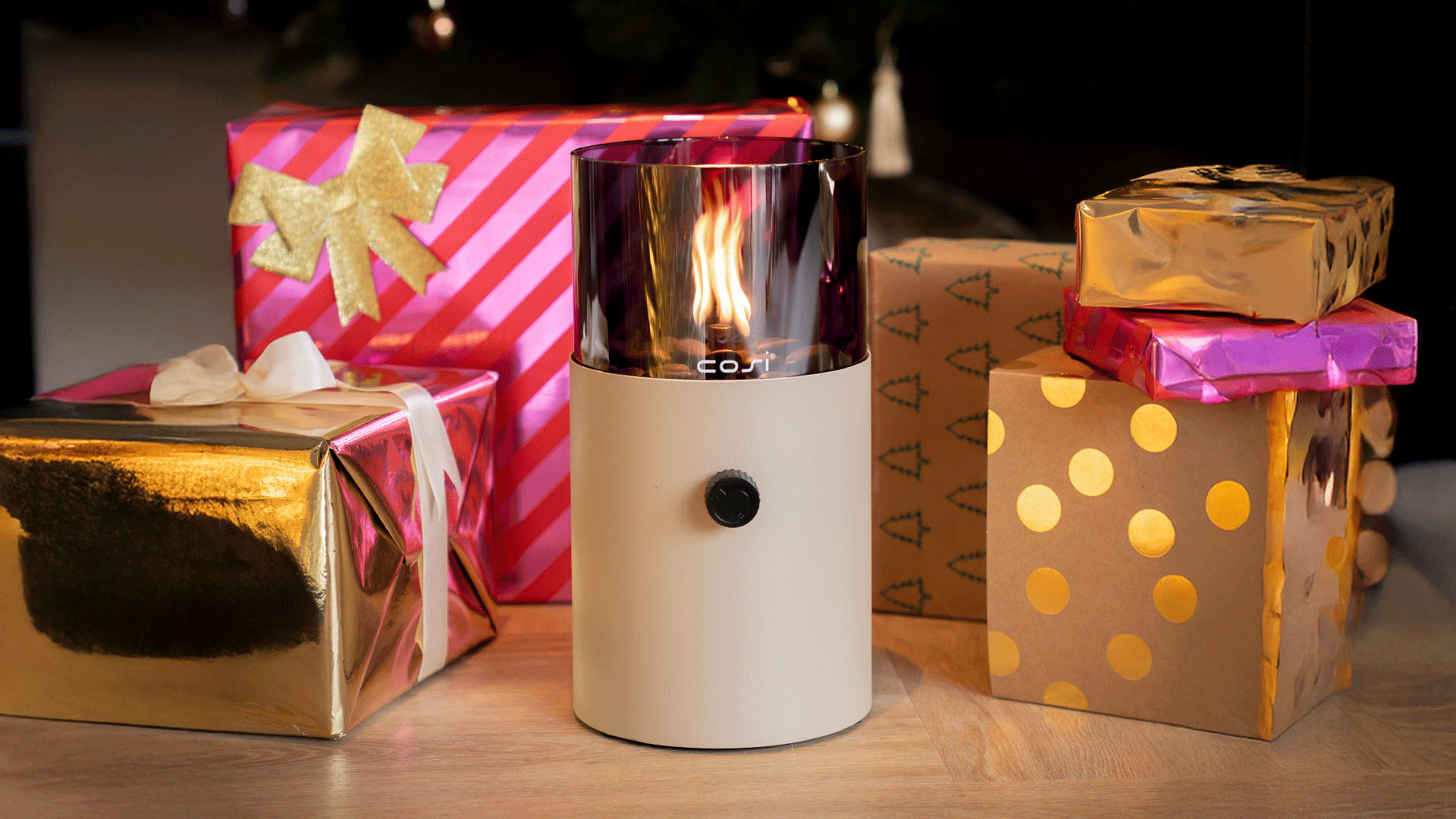 Leder du efter den ultimative julegave? Cosiscoop Original sandbeige røget er en stilfuld stemningsskaber til indendørs og udendørs brug. Denne festlige udgave kommer i en luksuriøs juleemballage med gulddetaljer, hvilket gør den til den perfekte gave til julen.