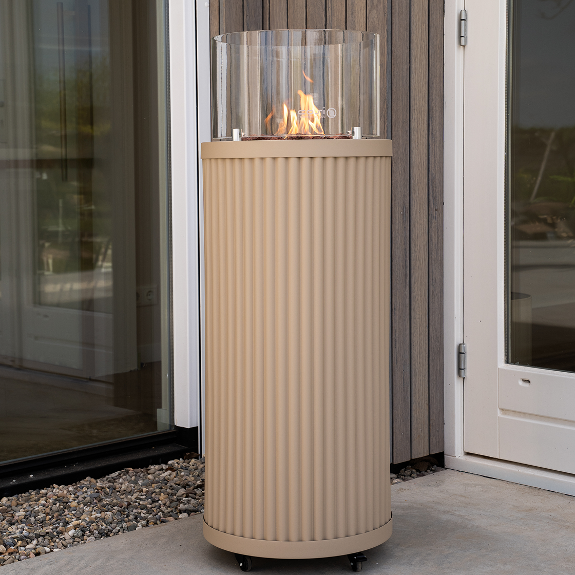 The Cosipillar Curved sandy beige is a round, pillar-shaped gas fire made of aluminum that steals the show in any outdoor space. Thanks to the large fire ring, you can enjoy tangible warmth. Ideal on colder days or when it gets a bit cooler in the evening. The neutral, soft color radiates tranquility and fits very well in a soothing, bohemian or Scandinavian garden style. Easily combine the pillar with the other items from the Calm collection.