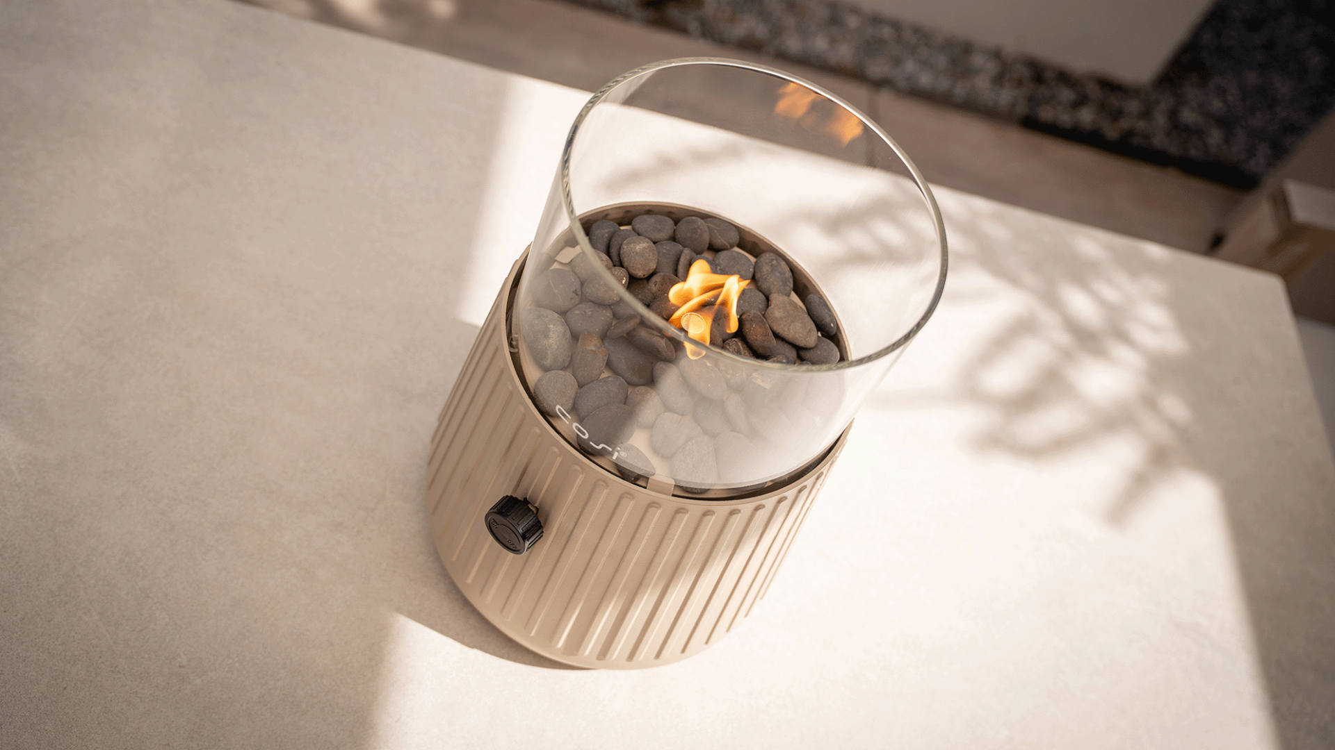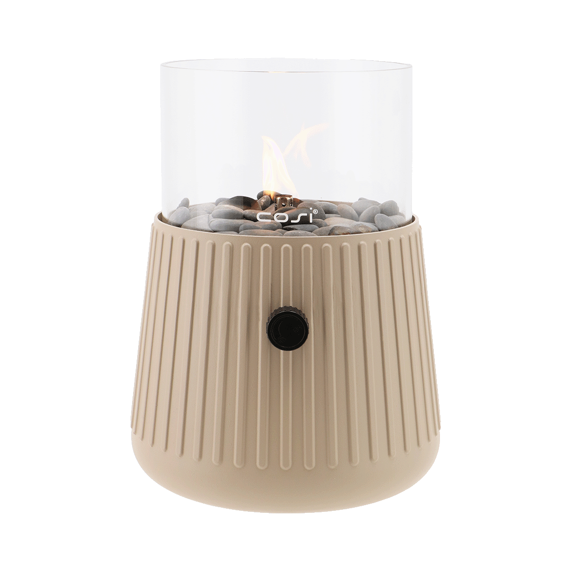 De Cosiscoop Bowie geeft net dat extra beetje charme aan elke binnen- of buitenruimte dankzij de sfeervolle vlam. Wat deze gaslantaarn zo bijzonder maakt, is de geribbelde behuizing. Dit detail zorgt voor een speels en eigentijds karakter. De zachte, warme tint sandy beige straalt rust uit en laat zich moeiteloos combineren met verschillende kleuren en materialen. Het transparante glas zorgt ervoor dat de vlam prachtig zichtbaar is en volledig tot zijn recht komt. De meegeleverde kiezelsteentjes maken het geheel helemaal af. Zet de Cosiscoop Bowie op je salontafel, bijzettafel, in de tuin of op het balkon en geniet van stijlvol sfeerlicht.